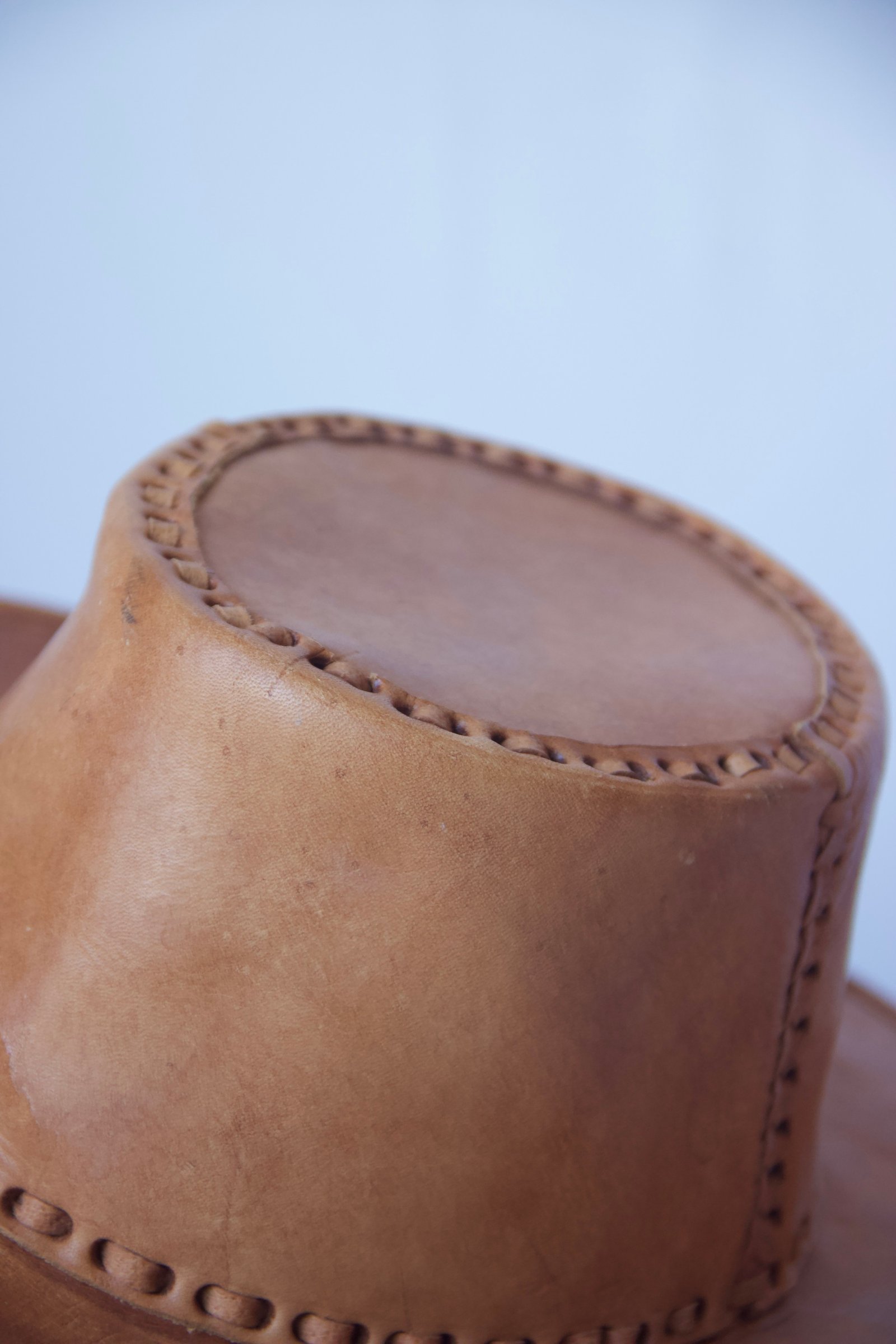 Chapeau western vintage en cuir suédé camel – fabrication artisanale