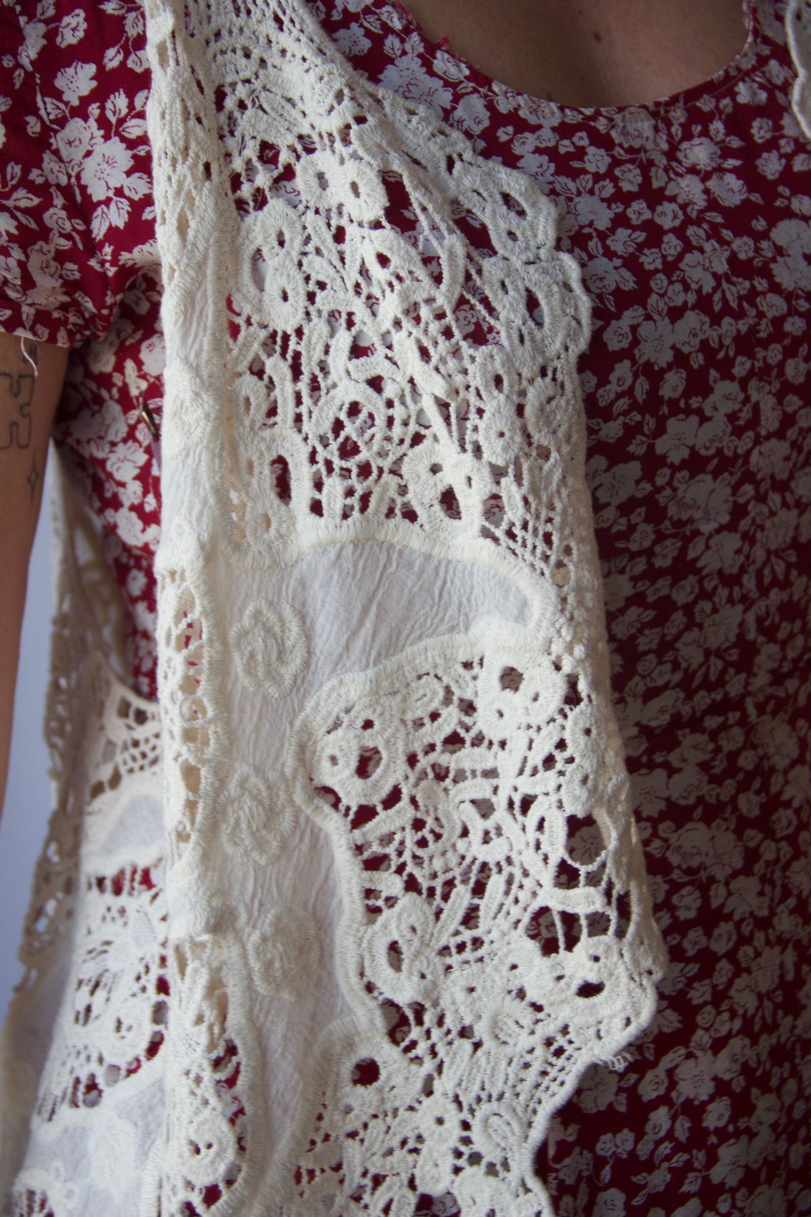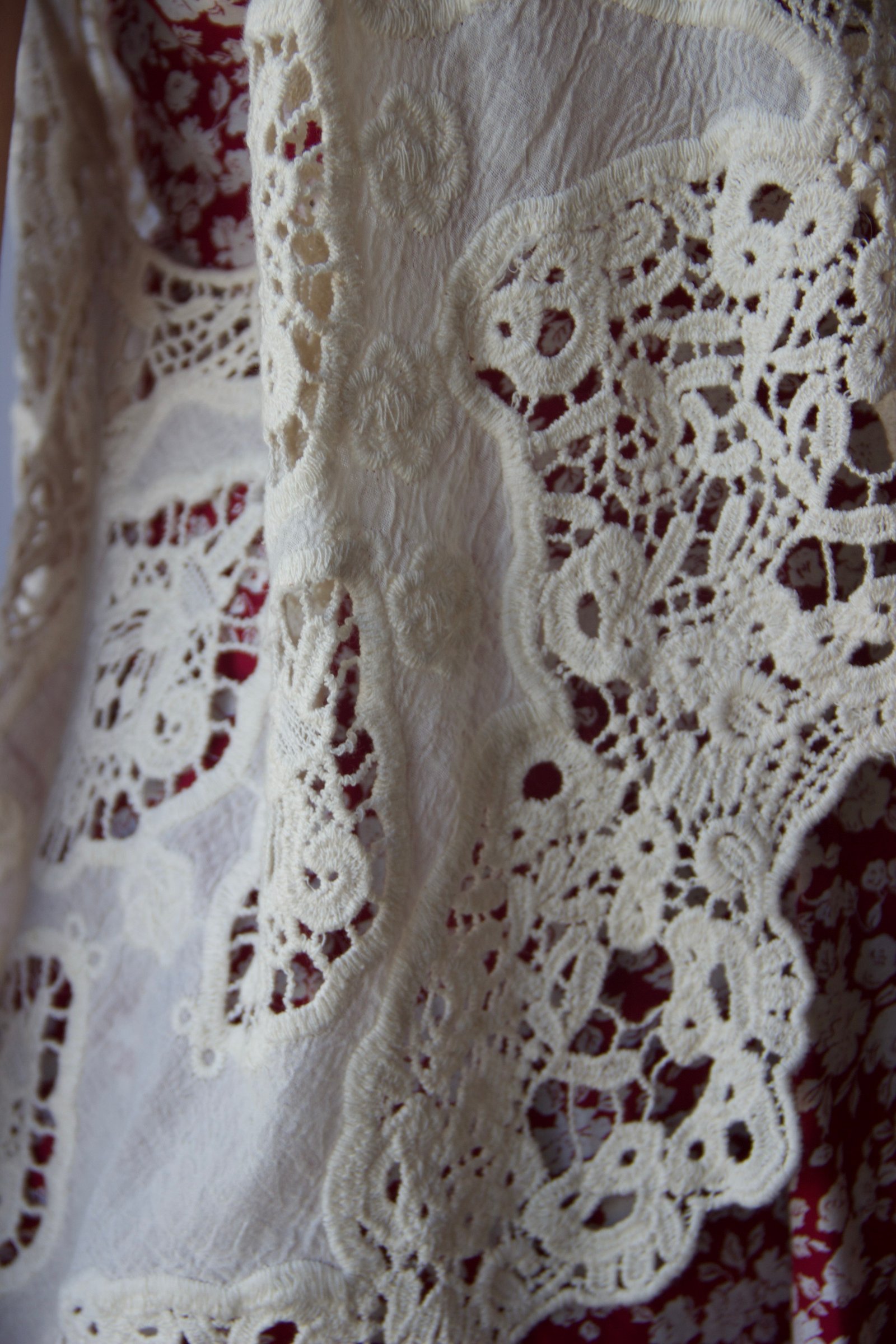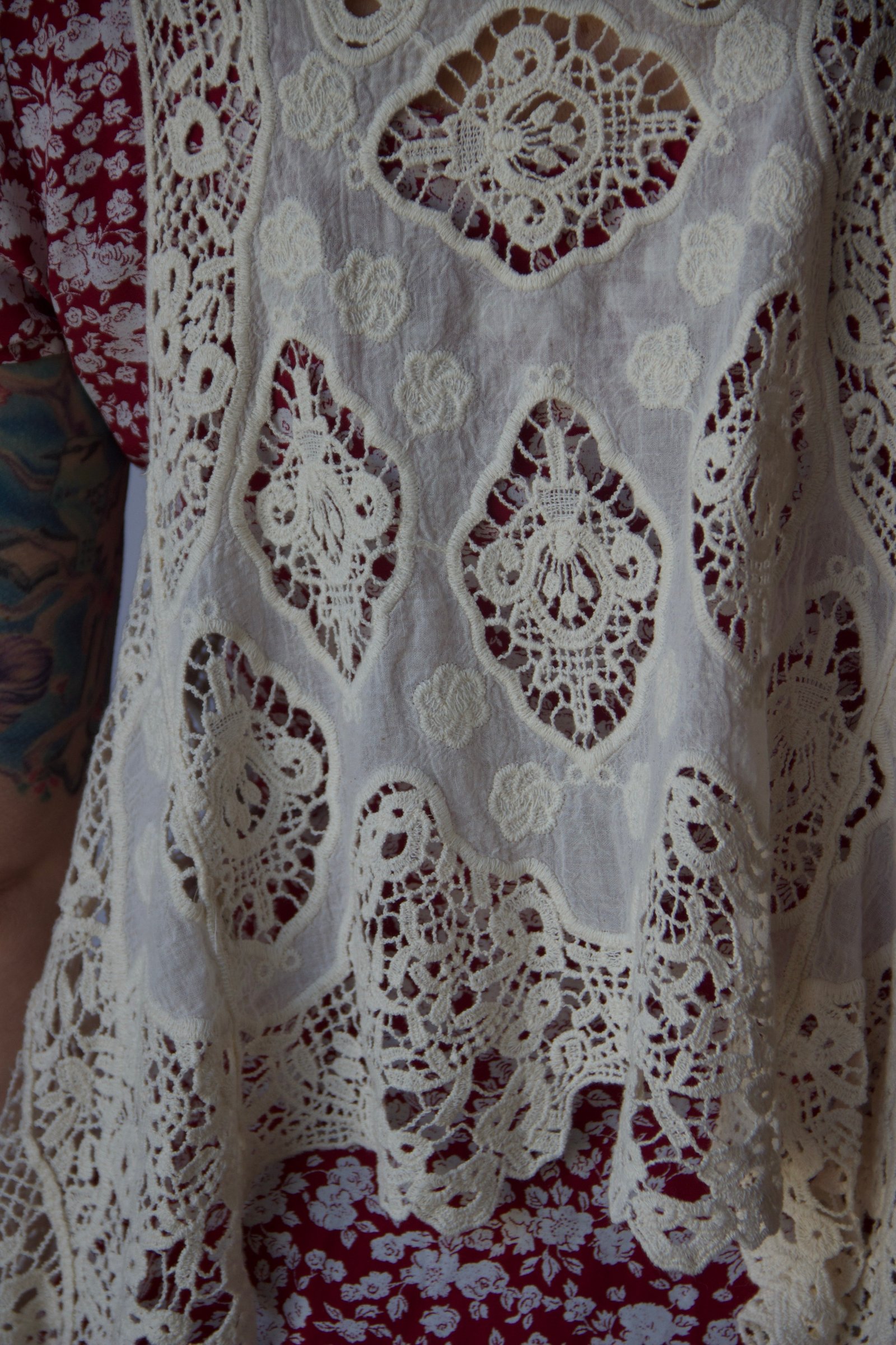 La pièce présente différents motifs en crochet, avec un joli jeu de transparence qui apporte de la légèreté. Coupe fluide et ouverte, facile à superposer sur une robe ou un top.