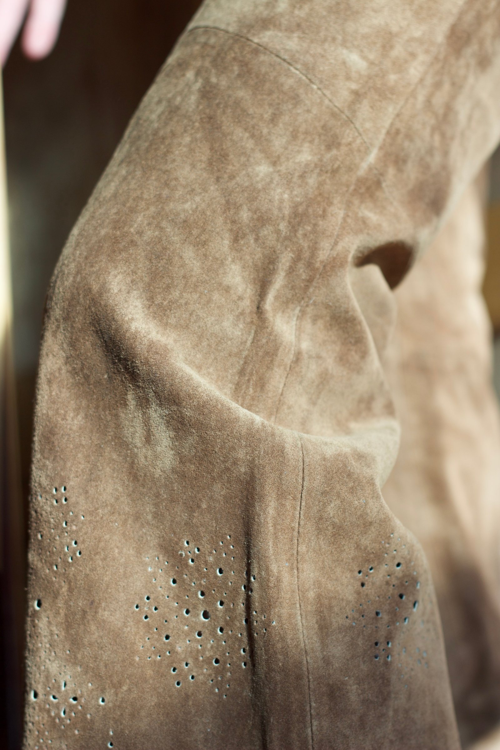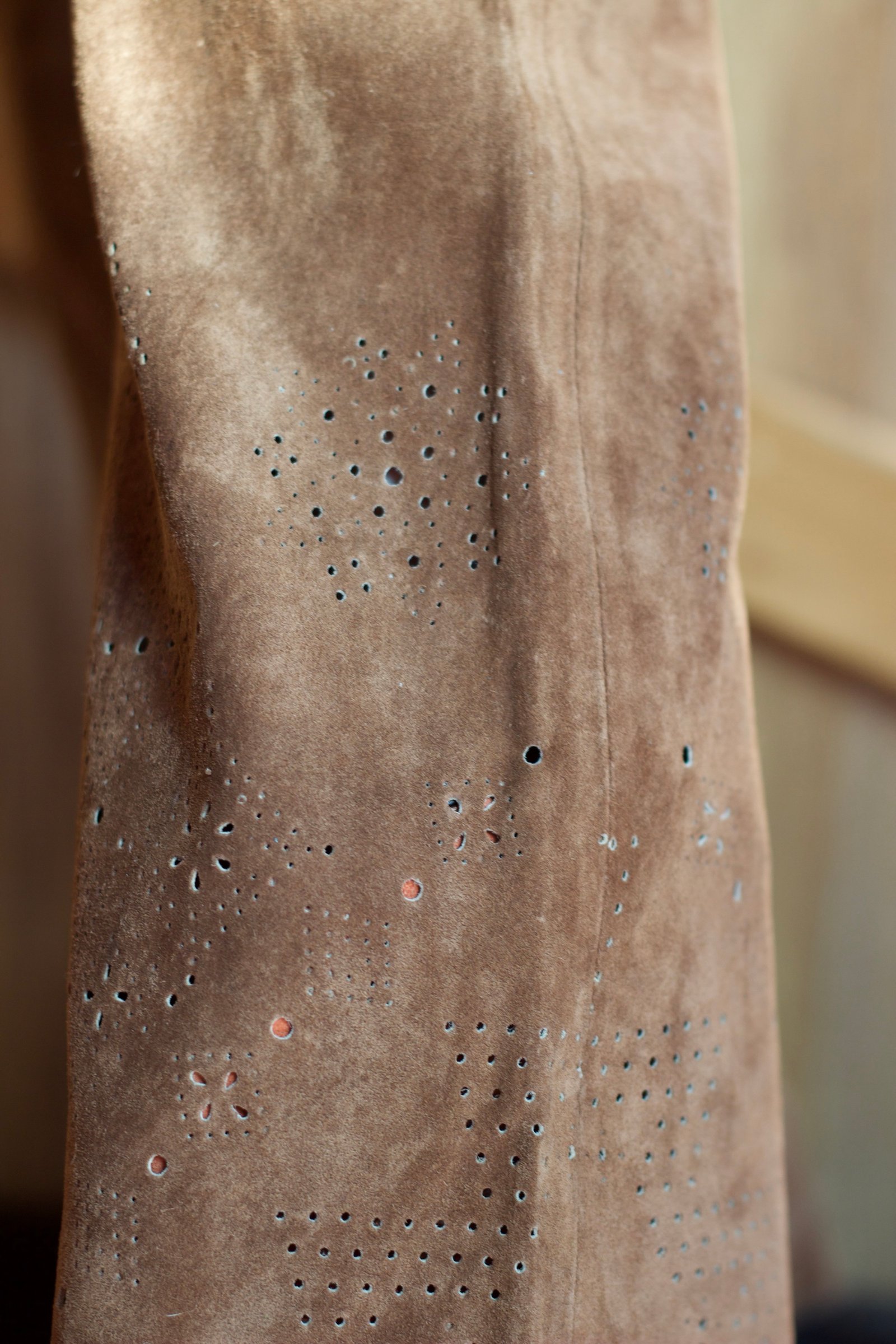 À noter : le daim présente quelques petites marques d’usure visibles, qui font partie de son caractère vintage.