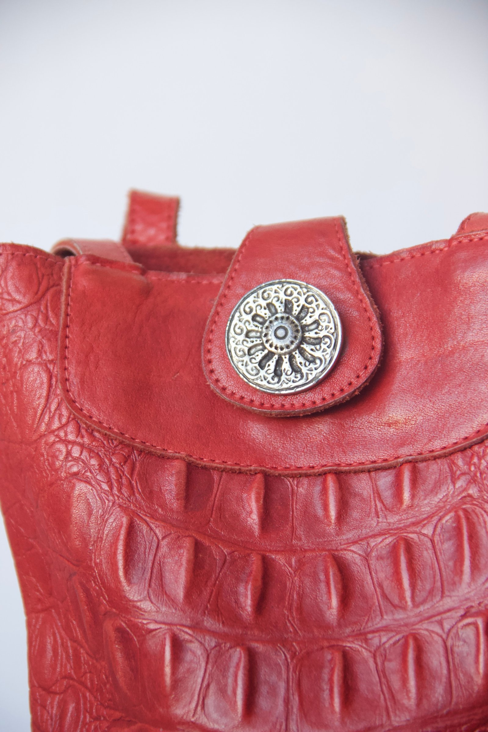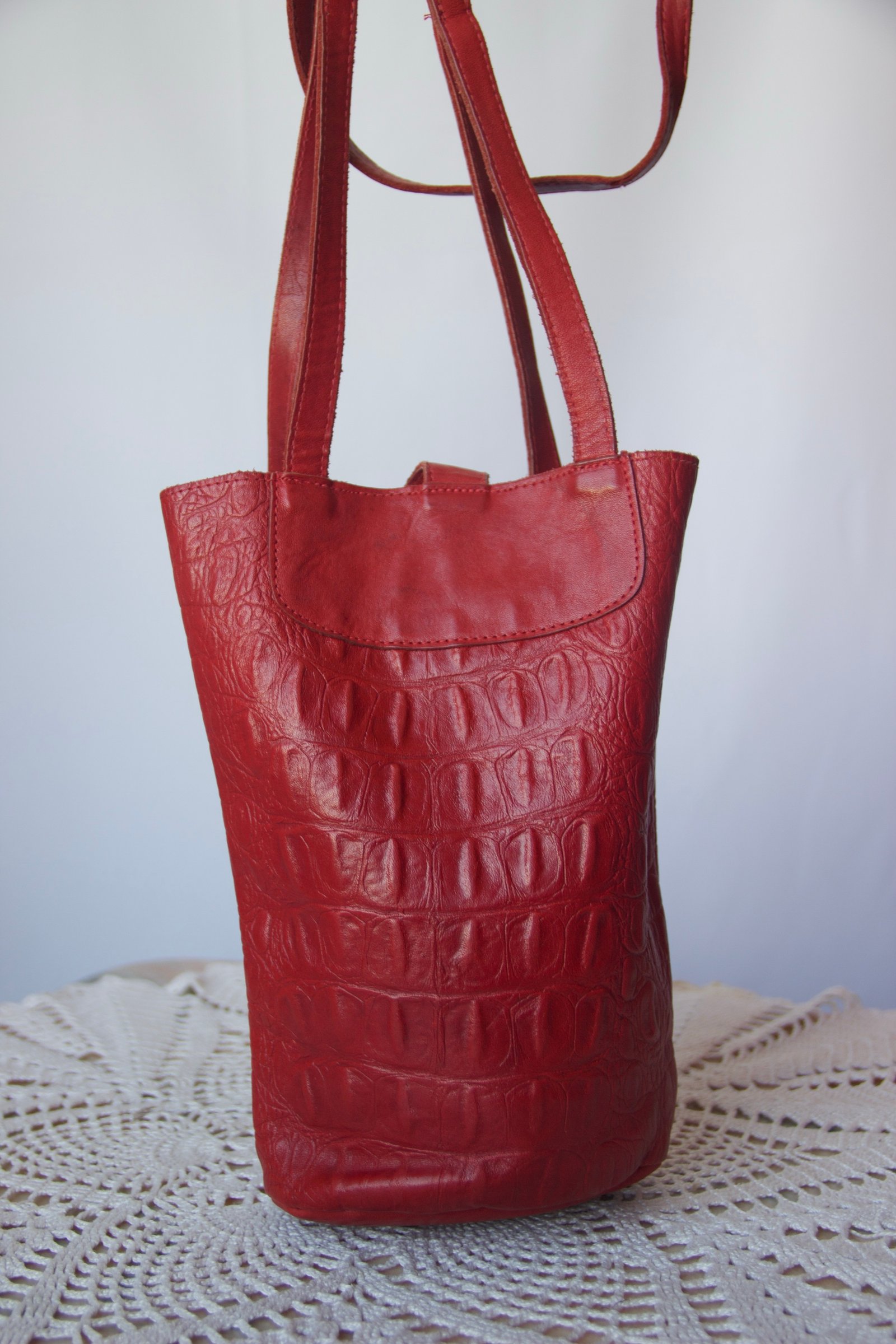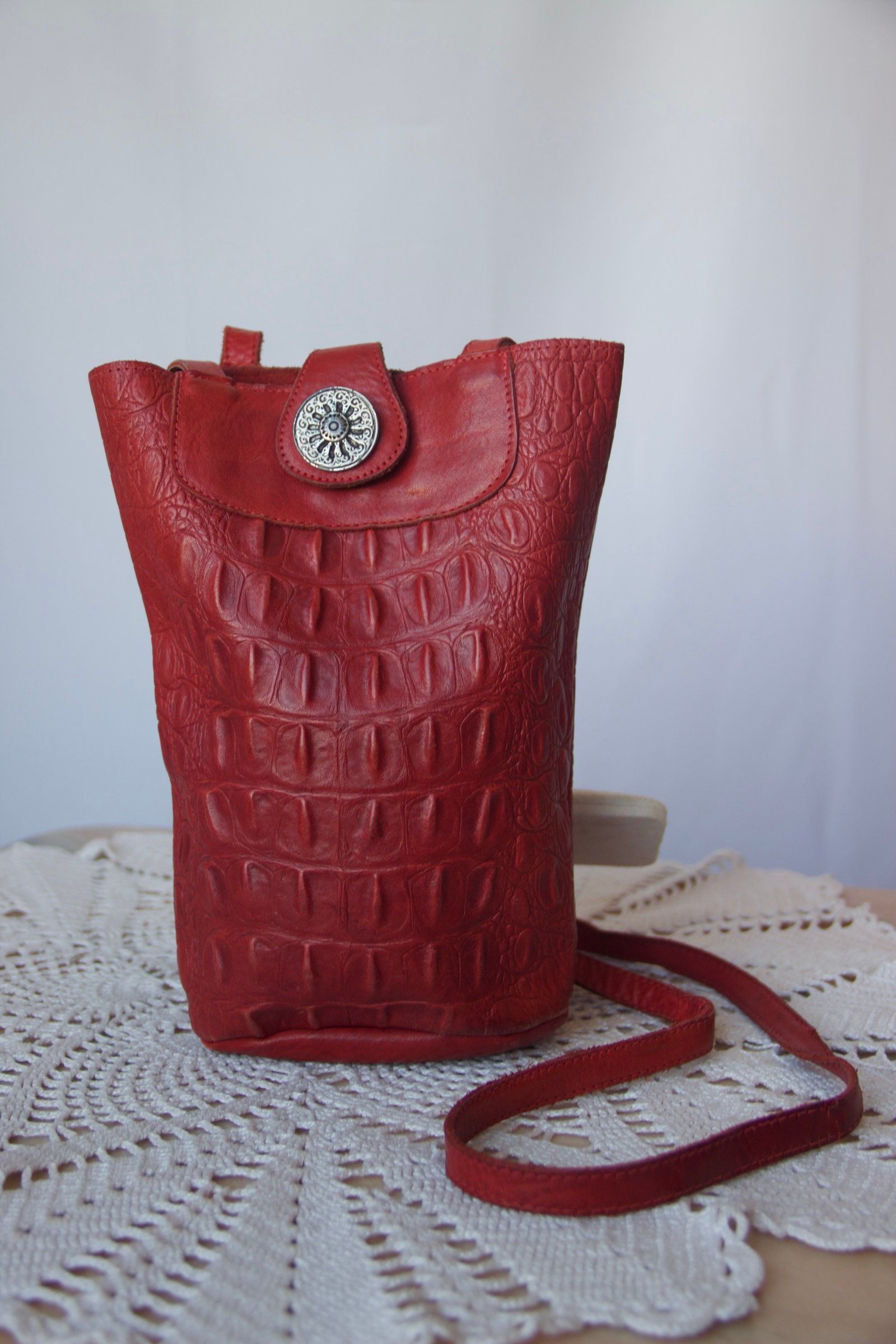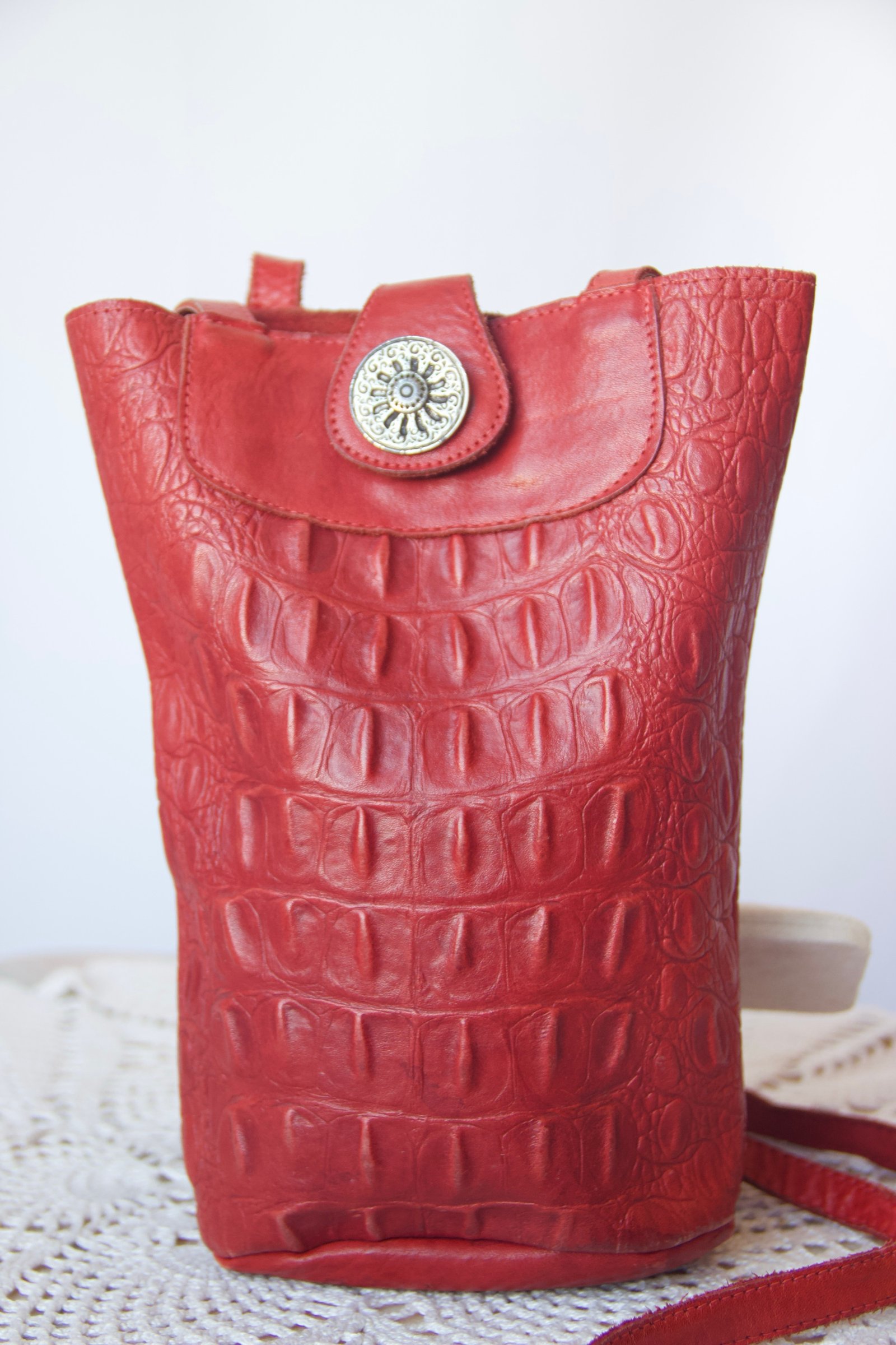 Sac bandoulière vintage rouge en cuir d’aligator
