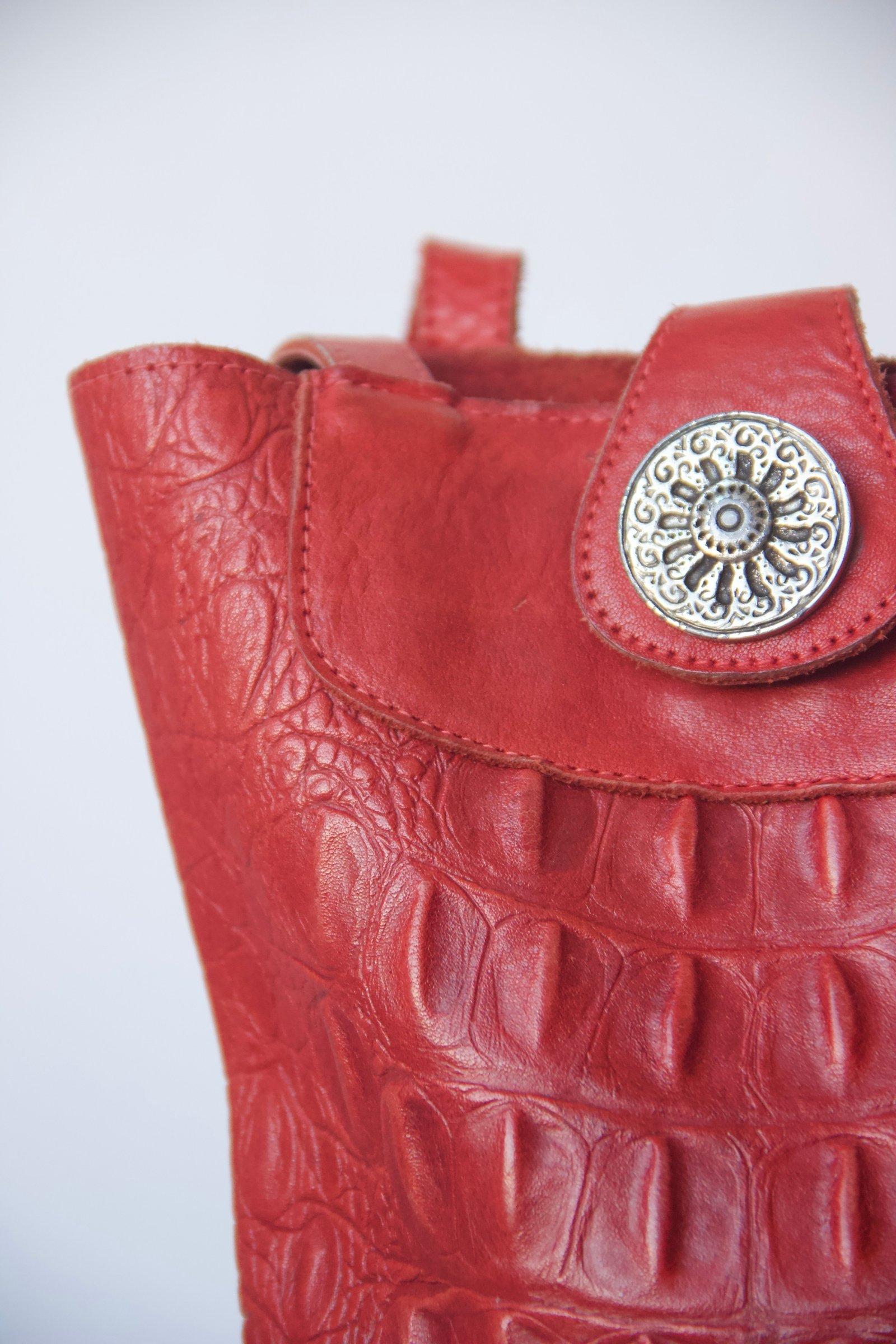 vintage en cuir d’alligator rouge, à l’allure forte et élégante.