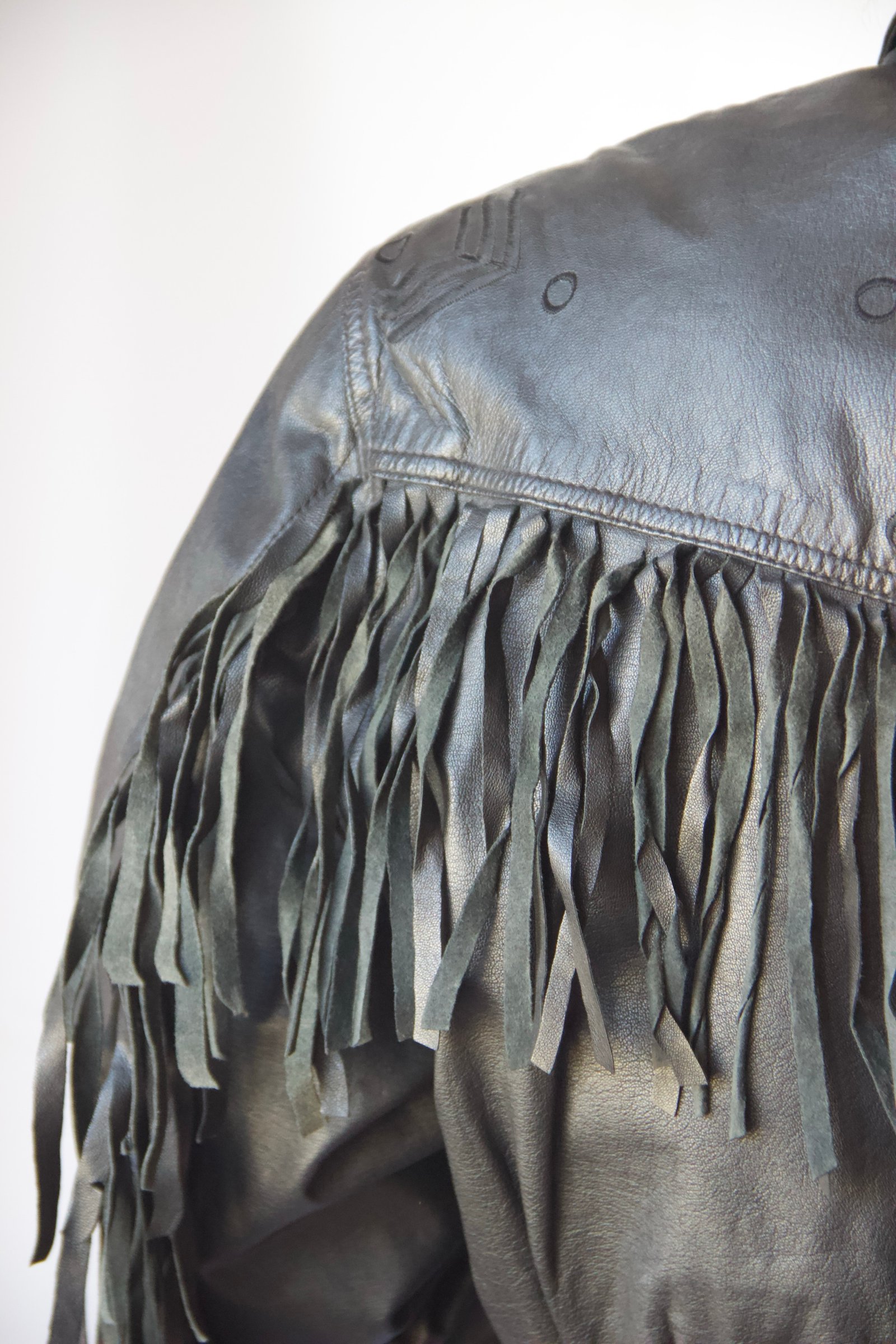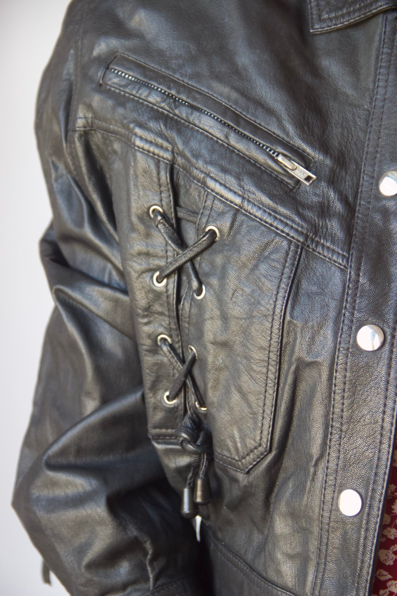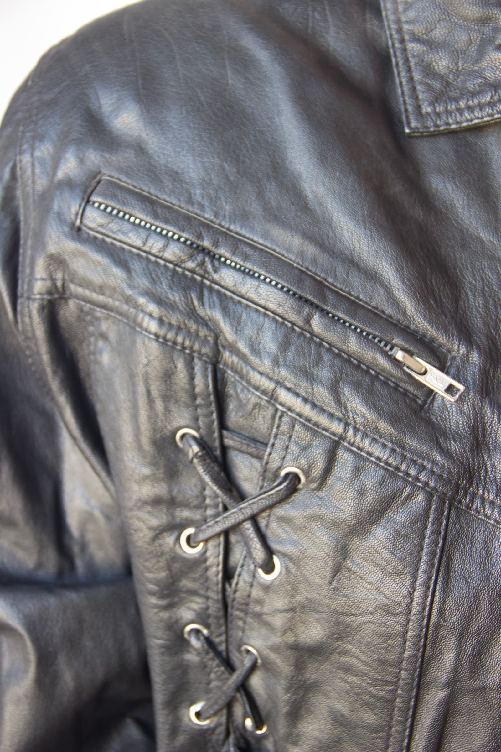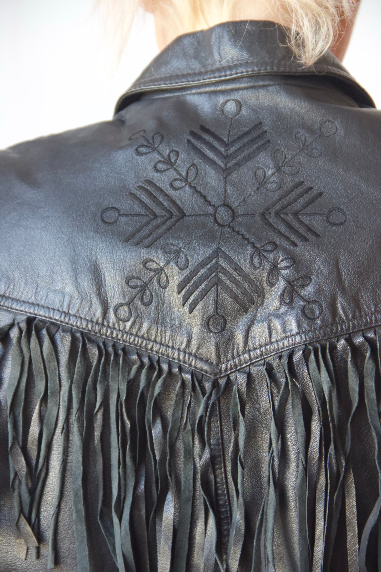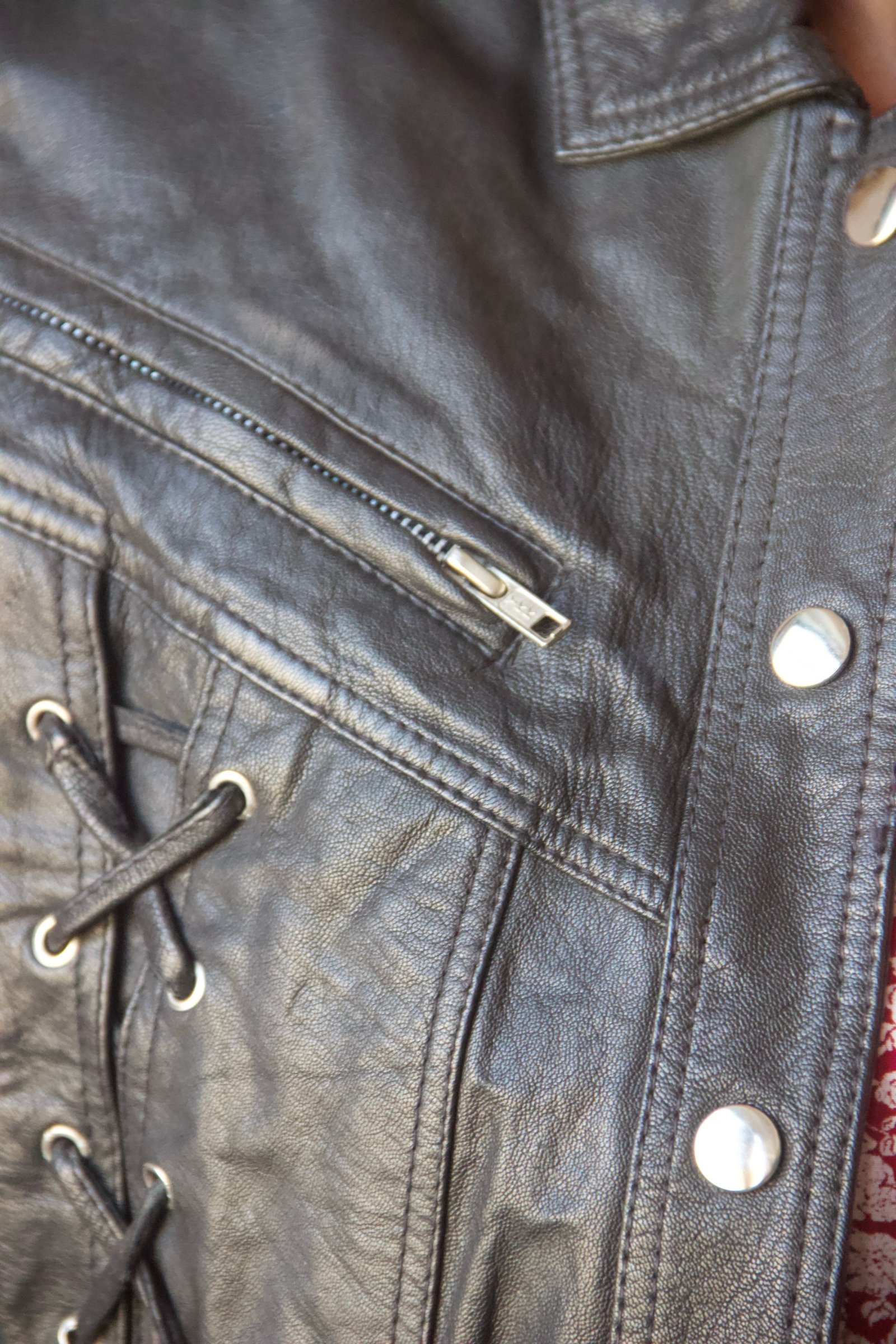 Veste en cuir vintage années 90 en cuir de chèvre, pièce rare au style western affirmé. Coupe légèrement loose avec une belle tenue du cuir, souple mais structurée.