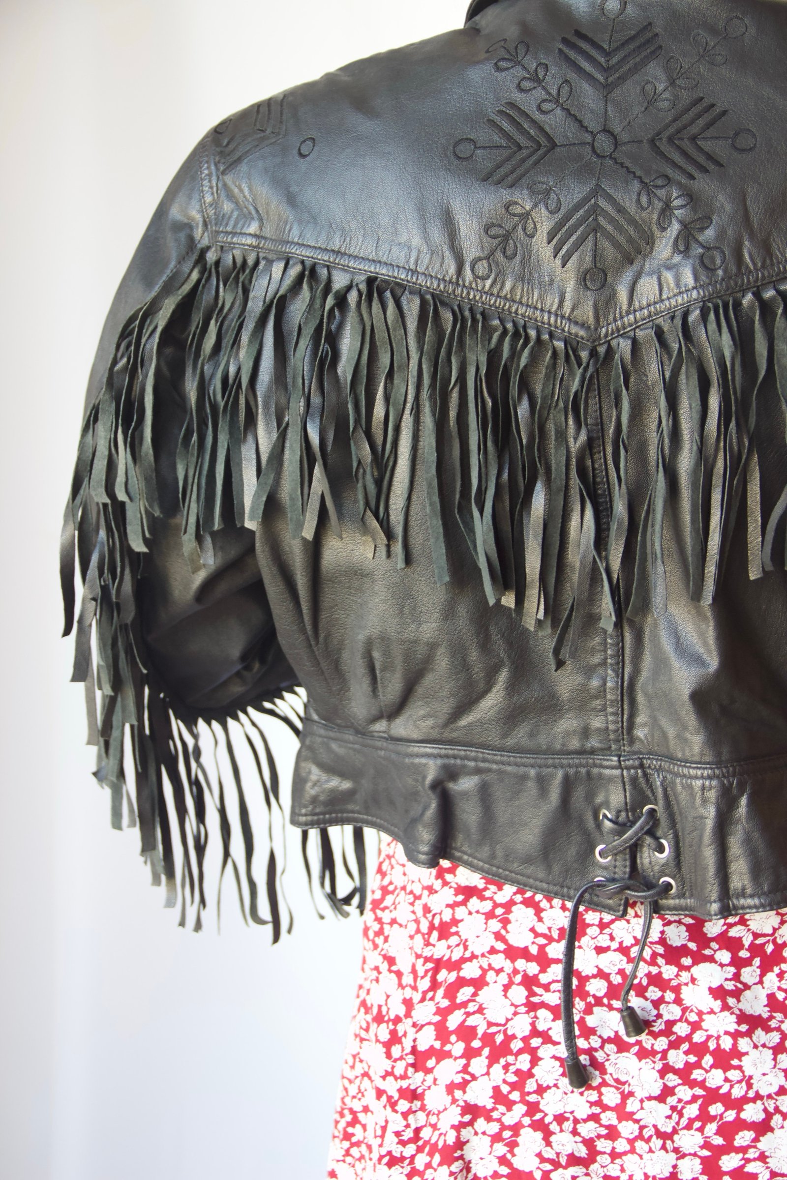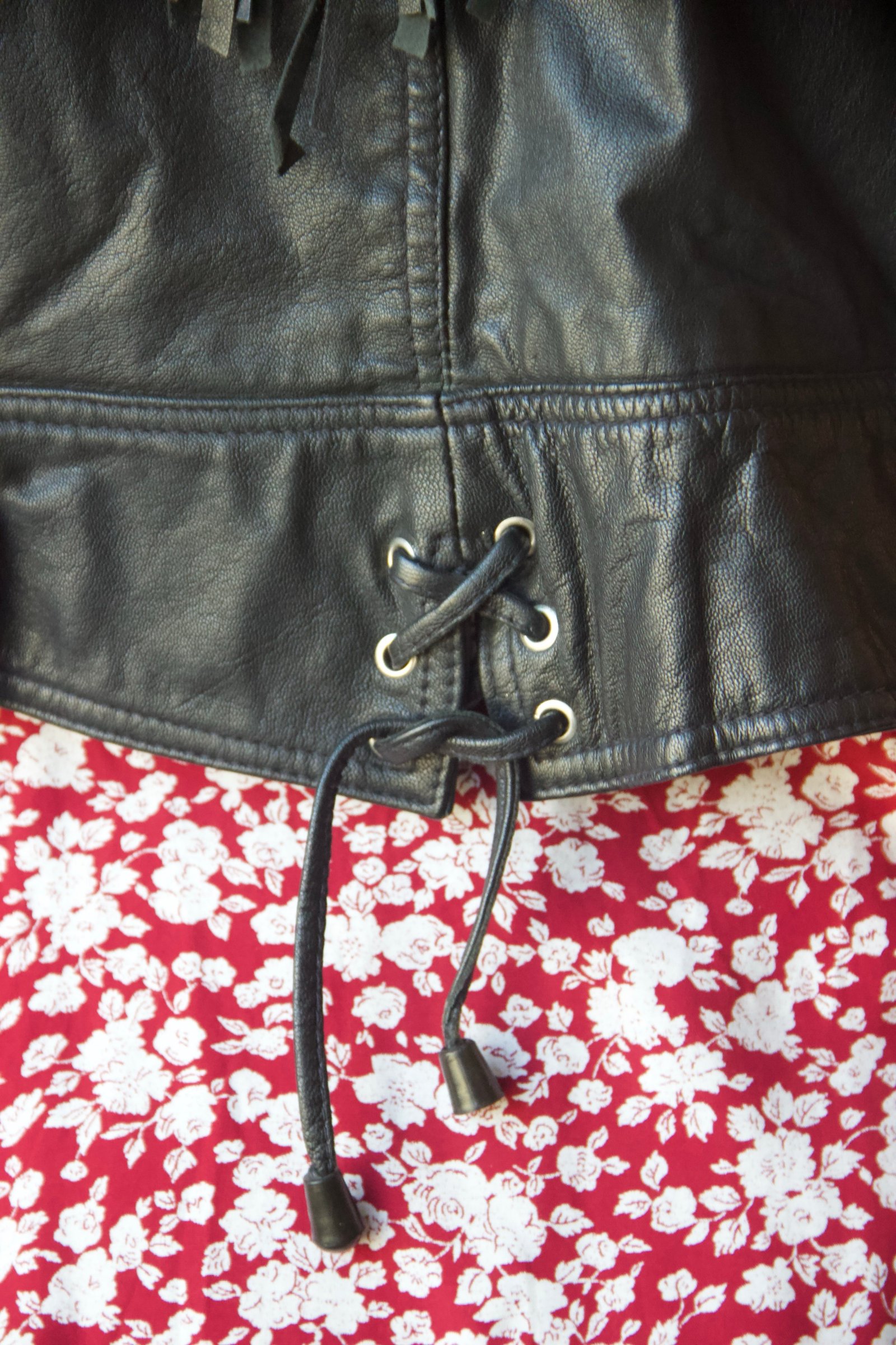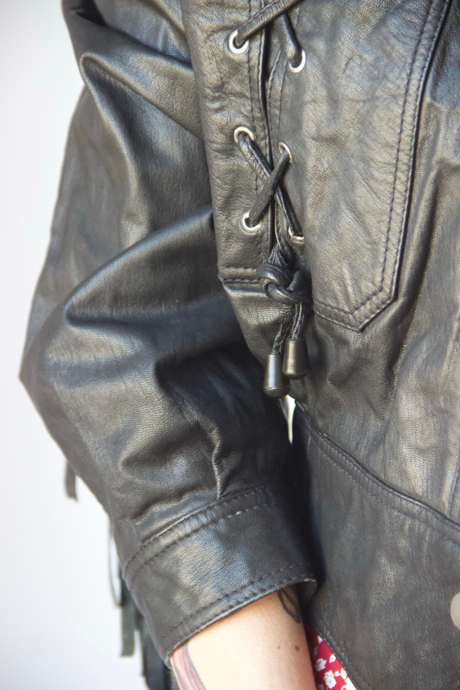 Travail de détails hyper riche avec laçages sur le devant et les épaules, franges dans le dos et finitions travaillées.